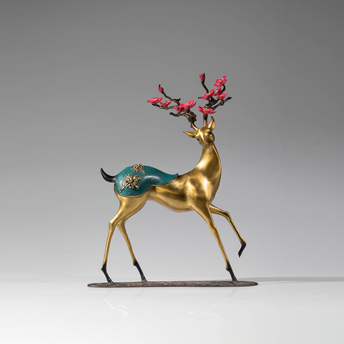 The statue presents a unique artistic beauty with its elegant golden deer posture and richly colored antlers. The gold deer table decor is light and graceful, with a gentle expression. Paired with a turquoise back and red flowers, it instantly fills a space with sophistication and vitality. Whether placed on a sideboard, coffee table, or office desk, it brings a soft visual enjoyment and auspicious symbolism to the environment. In home decor, people often choose a Bronze Deer Figurine to symbolize a peaceful, harmonious, and warm living atmosphere. Therefore, this statue is not only a decoration but also an important work of art that conveys blessings and enhances the ambiance of a space.