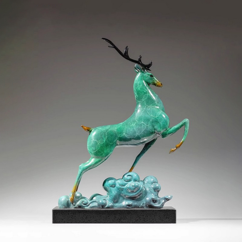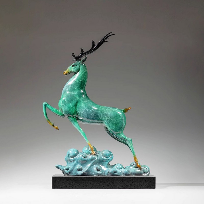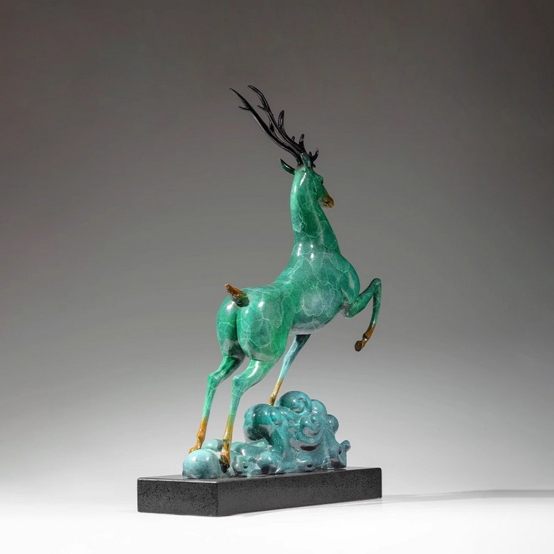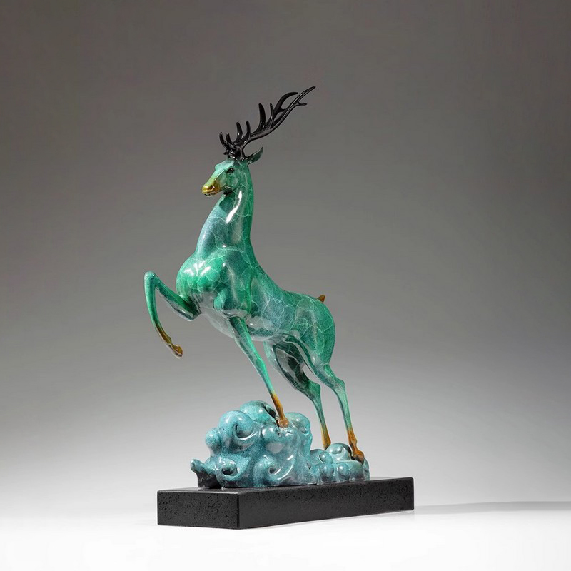 In modern home art, sculptures like these are more than just decorative pieces; they carry auspicious symbols of hope and good fortune. Deer have long been considered a symbol of longevity and progress, their soaring posture instilling strength and confidence. The bronze material ensures the sturdiness and durability of the home interiors deer figurine, while the green luster adds a sense of nature and elegance. Just as the bronze deer statue conveys, these pieces not only beautify the living environment but also serve as symbols of spiritual comfort.