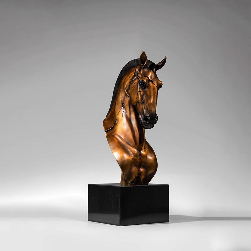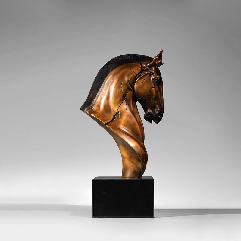 In modern decor, this sculpture is more than just a sculpture; it serves as a symbol. As symbols of strength and loyalty, horses are widely used in homes and offices, conveying a positive spirit. This copper horse head, with its unique crackle effect, reveals the traces of time and life, imbuing the work with deeper cultural significance. The bronze material ensures its long-lasting preservation value, creating a stable and dignified presence in any space.