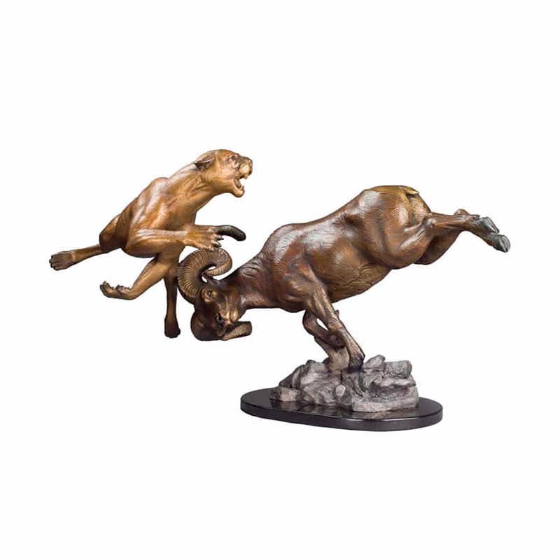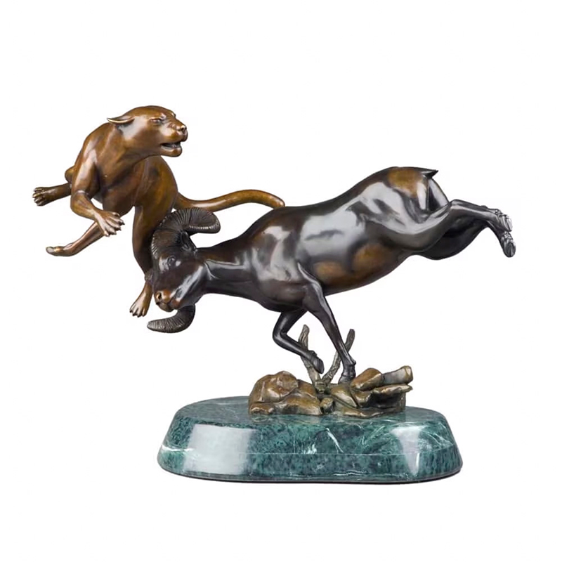 In modern life, this sculpture is more than just a decorative piece of art; it symbolizes the laws of survival and the resilience of nature. The Bronze Mountain Lion and Big Horn Sculpture, depicting the fierce battle between a mountain lion and a bighorn sheep, conveys a profoundly inspiring clash of strength and wisdom. The Cougar Statue for Sale not only satisfies collectors but also lends a unique presence to gardens, living rooms, or corporate lobbies. The bronze material ensures the sculpture's durability and artistic quality, making it a valuable piece of art that showcases both taste and a commitment to life.