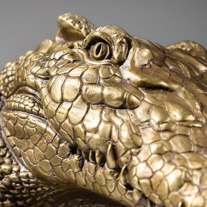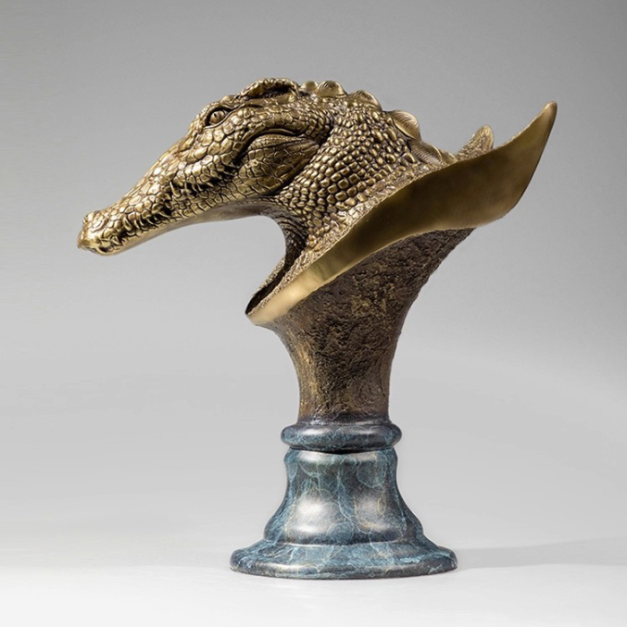 In contemporary decorative art, animal themes often carry symbolic meaning, and the crocodile sculpture is a direct expression of power and primal vitality. It not only replicates the fierce appearance of a crocodile but also, through artistic treatment, makes the work more suitable for integration into modern living spaces. Whether placed in a private collection or used in commercial spaces, it quickly attracts attention and creates a memorable impression.