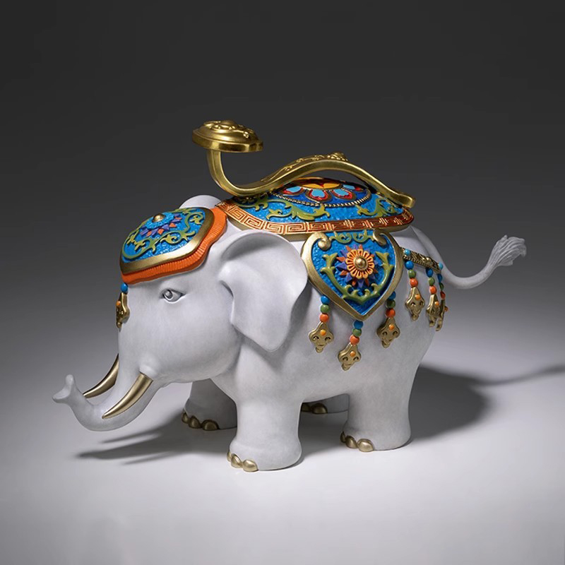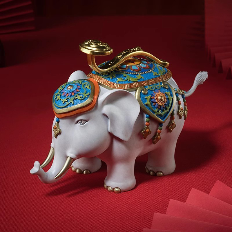In life, this is not only a work of art but also a spiritual source of comfort. Symbolizing wisdom, strength, and good fortune, this elephant figurines home decor evokes a sense of positivity and warmth. The bronze material lends the piece a sense of stability and heft, while the colorful patterns create a luxurious feel. Other sculptures, such as the Happy Elephant Statue, not only enhance the home but also bring spiritual comfort, serving as a valuable decorative piece that blends culture and aesthetics.