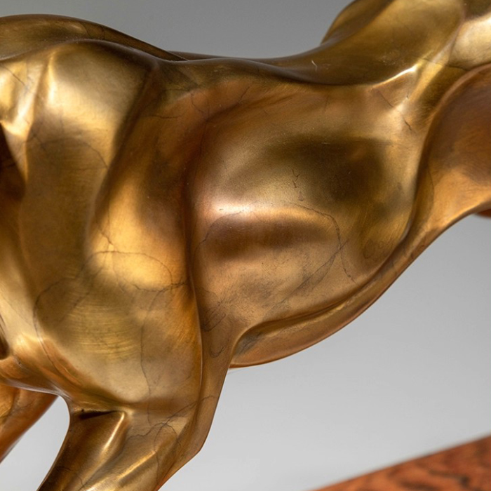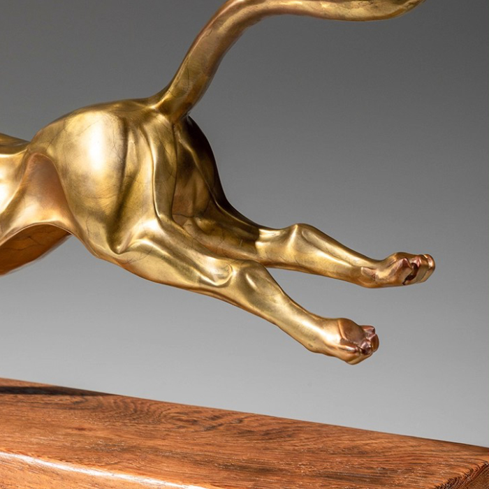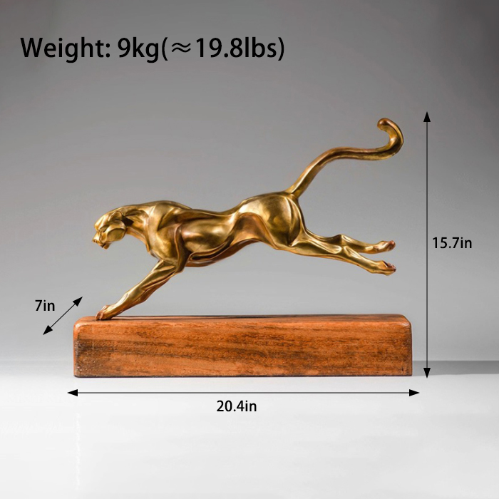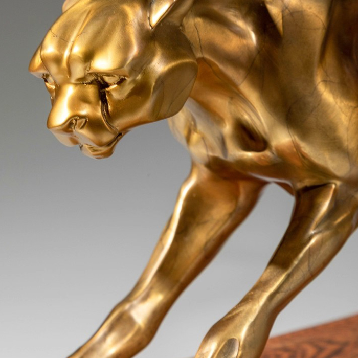 This bronze leopard sculpture focuses on realistic movement, achieving a mature form suitable for indoor display through precise proportions and careful finishing. Gold leopard decor is often placed on tabletops, display shelves, or presentation areas, effectively filling empty spaces and creating a more balanced layout. From a craftsmanship perspective, brass leopard sculpture achieves a strong balance between material weight and sculptural expression, retaining the richness of metal without appearing overly bold. Whether paired with modern interiors or more business-oriented environments, gold leopard decor integrates naturally into daily settings, enhancing spatial completeness while maintaining both practicality and visual appeal.