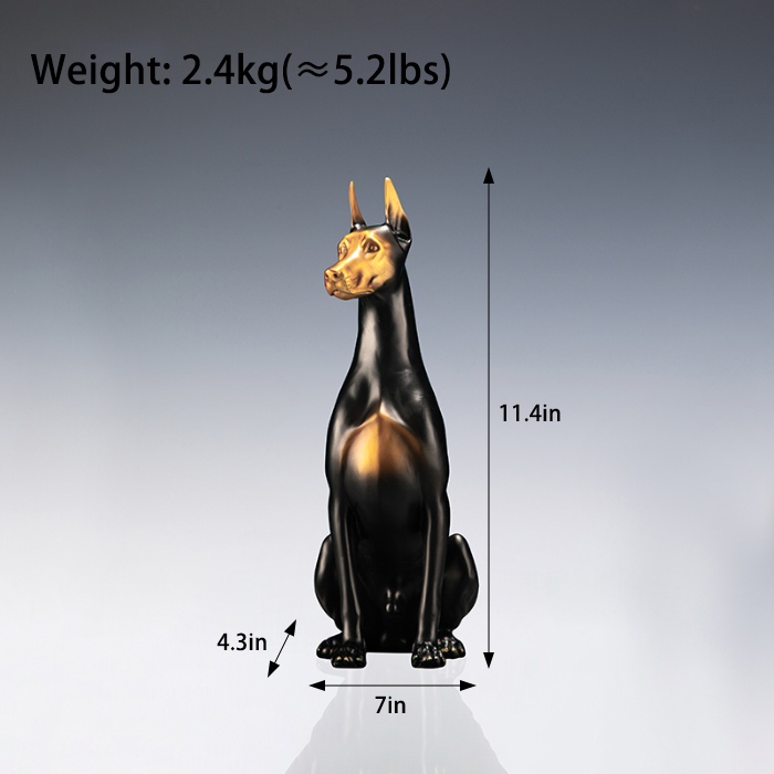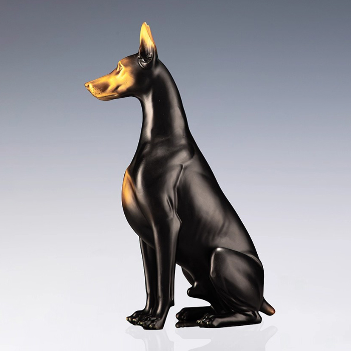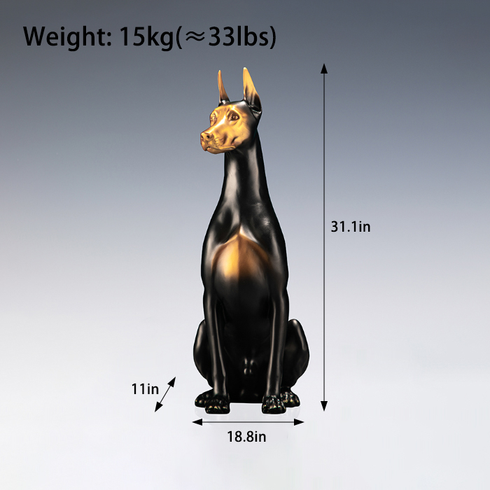 This type of statue is based on the image of a common guard dog in real life, emphasizing restraint, rationality, and a sense of security, better aligning with the aesthetic needs of modern living and working environments. It is not only a decorative item but also an expression of spatial attitude. The home goods Doberman statue is often placed at entrances or prominent locations, providing a sense of psychological security. In a design context, some believe that the bronze Doberman statue combines symbolic power with artistic beauty, thus possessing long-term value in both home furnishings and commercial spaces, being both visually appealing and durable.