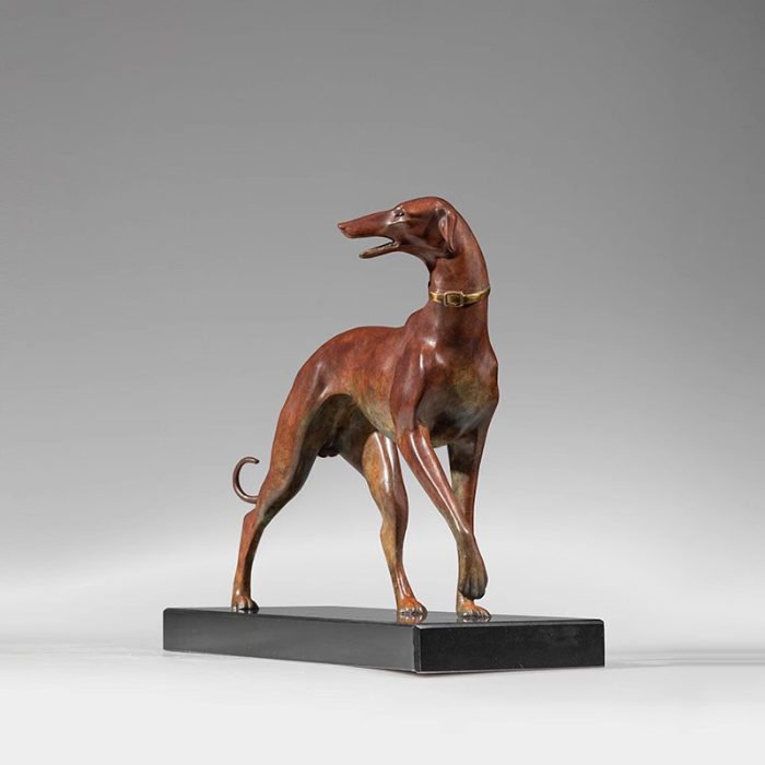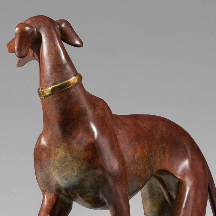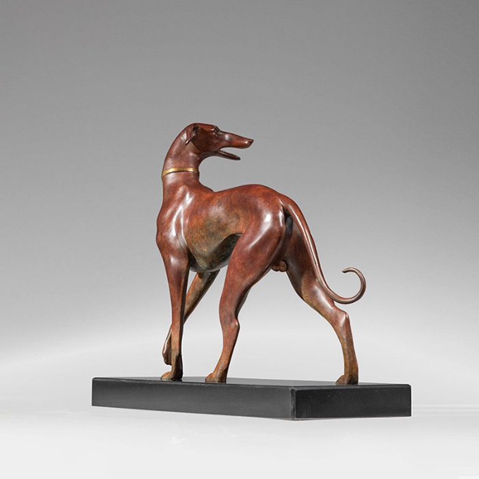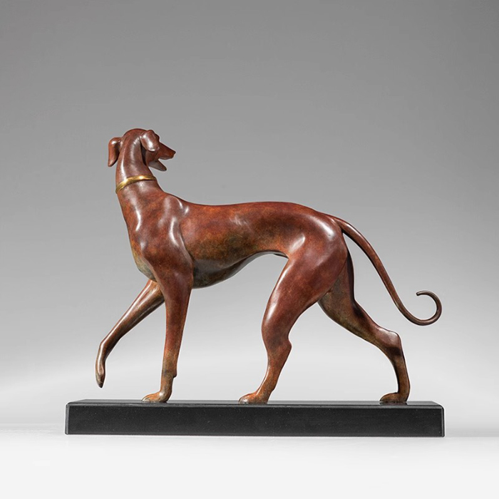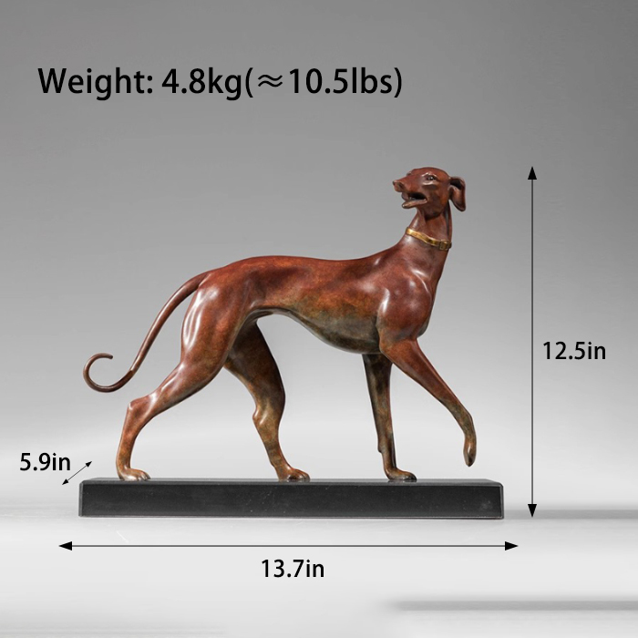 The image of the hound has often been considered a symbol of speed, agility, and noble temperament in art history. This piece combines realism and artistic expression to present a form that is both realistic and sculptural. Placed in an interior environment, it not only enhances the visual layers of the space but also conveys a calm and confident attitude towards life. As a hound statue, its value lies not only in its decorative function but also in its artistic expression of the spirit of the dog. In high-end interior or collection settings, such works are often referred to as Bronze Whippet Dog Sculptures, reflecting both aesthetic taste and emotional resonance.