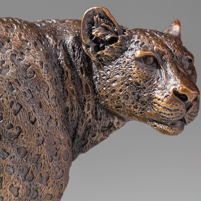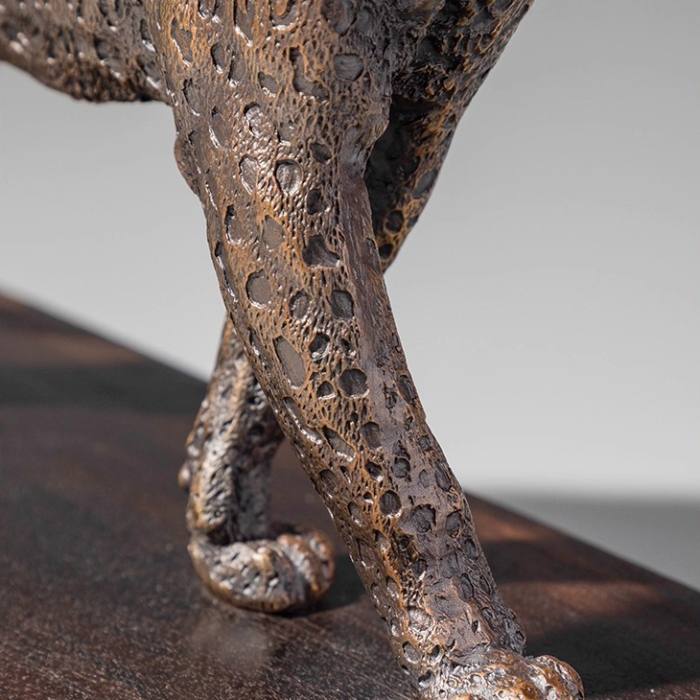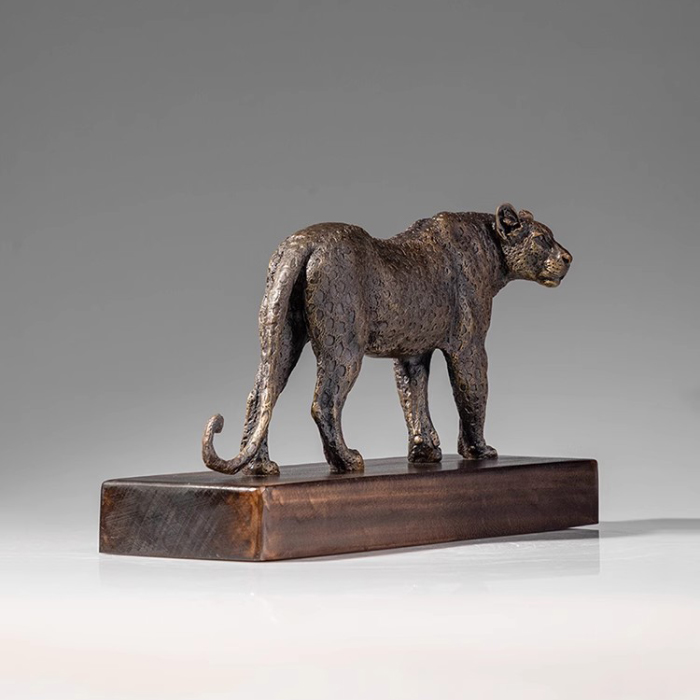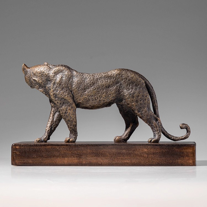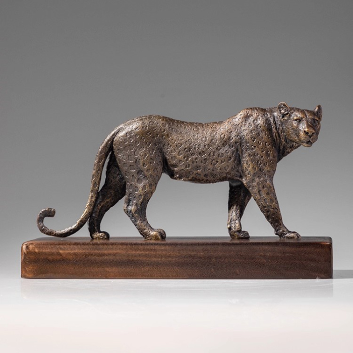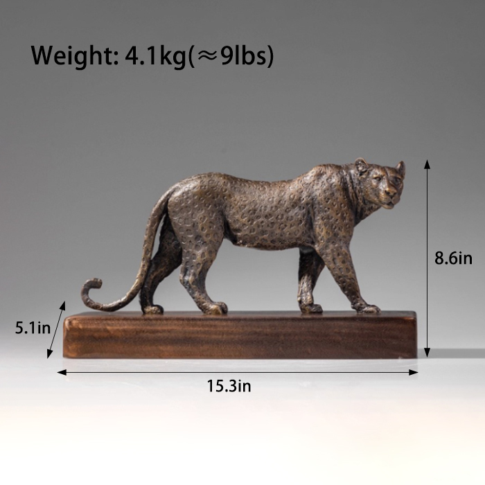 The sculpture captures the power and elegance of the leopard in brass, perfectly blending wildness and art. The leopard figurine decor features smooth lines and a three-dimensional, detailed speckled texture, instantly conveying its agility and dynamism. Placed in a study, living room, or office, it not only enhances the quality of the space but, like many brass leopard sculptures, reminds people to maintain decisiveness and action.
