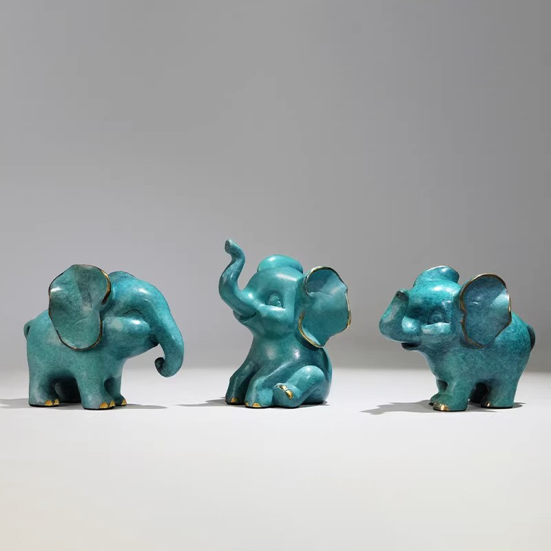In modern life, this statue is more than just an artistic ornament; it also symbolizes good fortune and harmony. Elephants have long symbolized wisdom and strength, while the grouping of three elephants emphasizes unity, companionship, and happiness. Crafted from bronze, the Three Elephants statue boasts soft, elegant colors and meticulous craftsmanship, ensuring long-lasting beauty. Displaying it in your home or office not only adds to the artistic ambiance but also fosters positive and auspicious meanings.