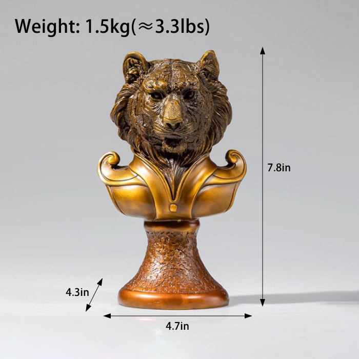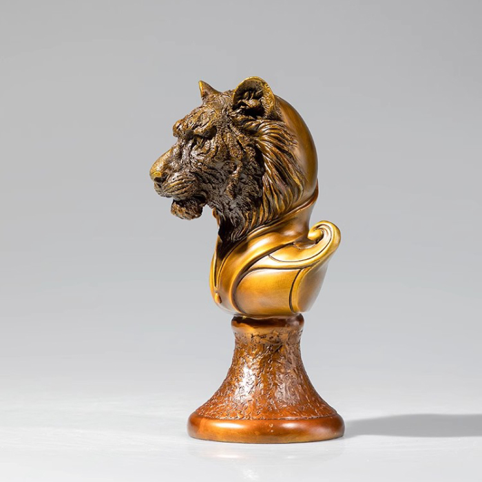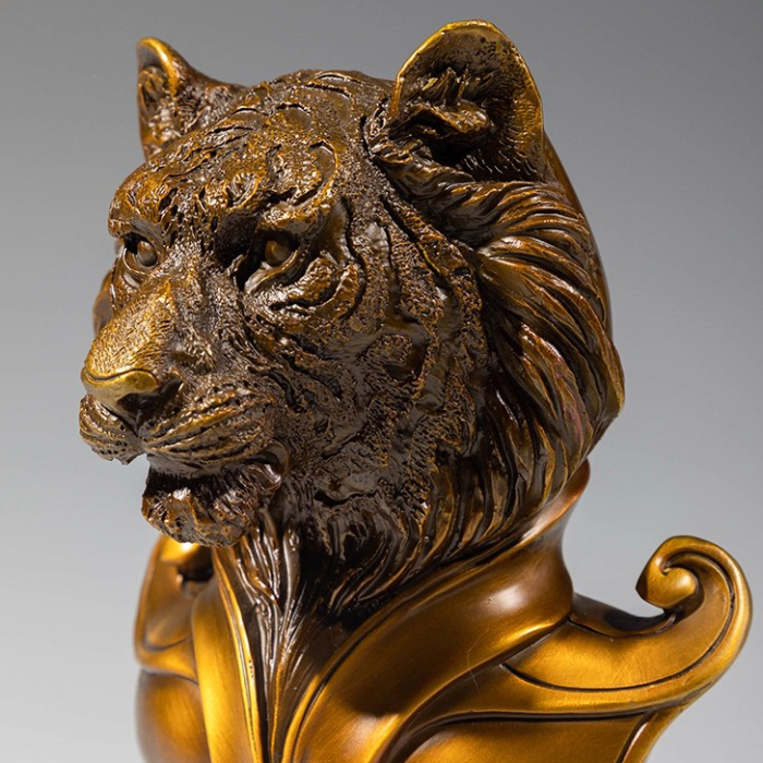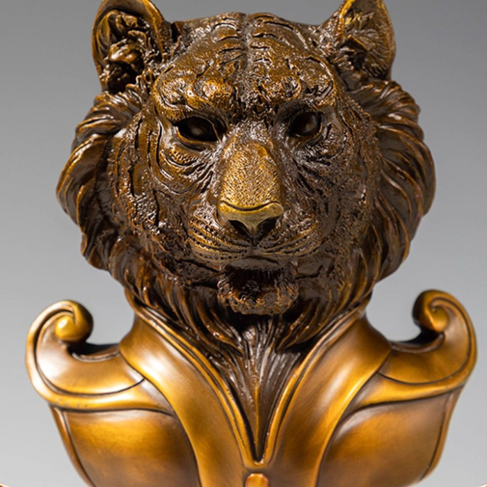 Among numerous animal-themed artworks, this piece expresses power and dignity as its core theme. The design is stable yet not rigid, and the details are full of vitality. Placed in an everyday environment, the tiger head bust is not just a decoration, but more like a spiritual symbol, conveying courage, confidence, and protection. In some cultural contexts, it is also often considered a symbol of strength and authority, consistent with the spiritual connotations represented by bronze tiger sculptures.