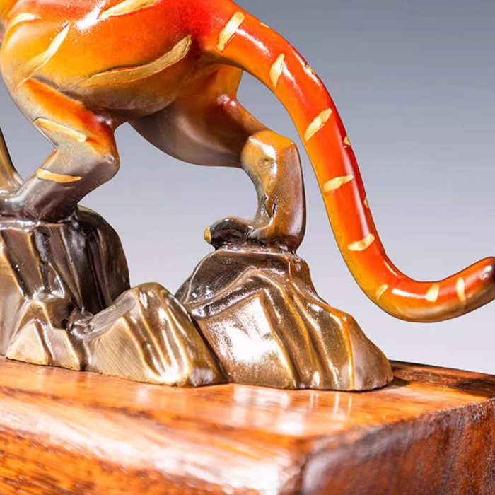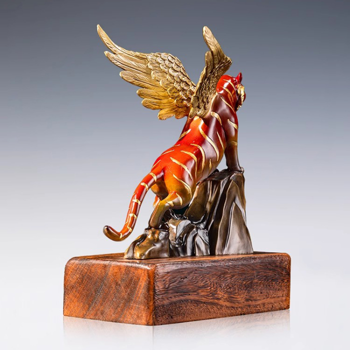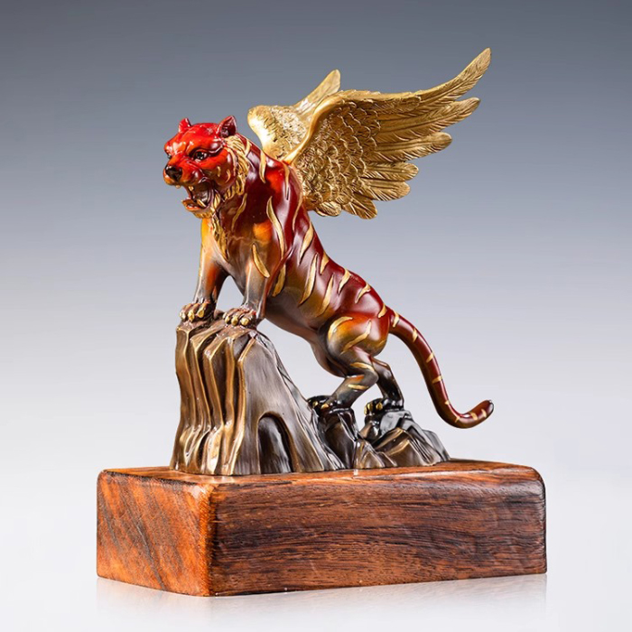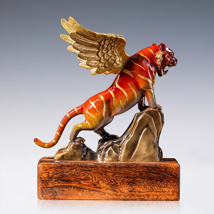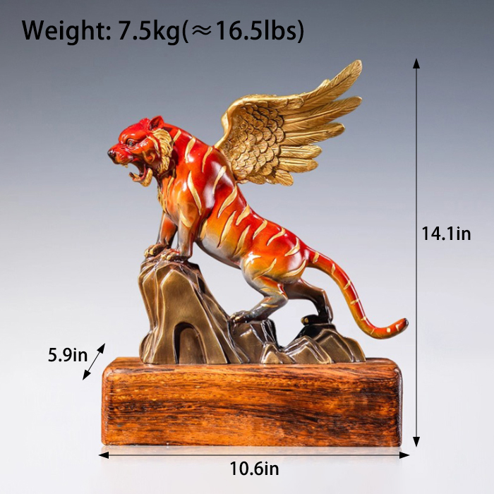 The entire piece, through the combination of the fierce tiger and its wings, reinforces the themes of strength and transcendence. The rock base and leaping posture create a contrast between stability and dynamism, making the winged tiger statue a strong visual focal point in any space.