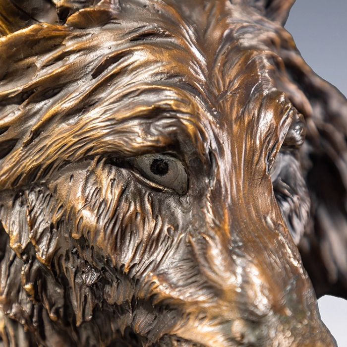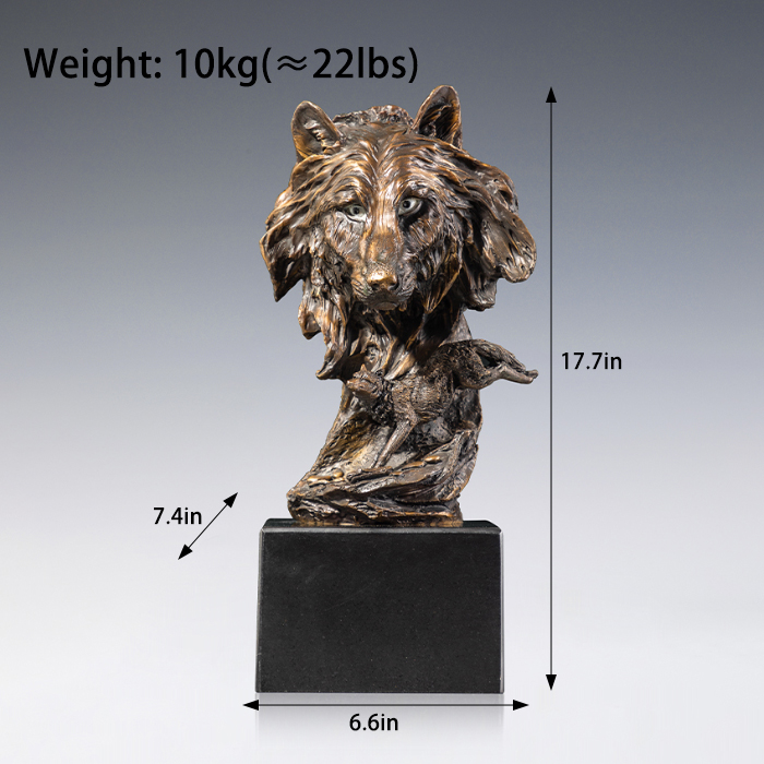 Inspired by the realistic expressions of animals, this type of sculpture emphasizes spiritual temperament rather than exaggerated movements, making it more suitable for integration into modern living spaces. It is not only a decorative piece but also an embodiment of attitude, conveying calmness, judgment, and inner strength. The wolf face sculpture is often placed in environments requiring focus and contemplation, subtly influencing the atmosphere of the space.