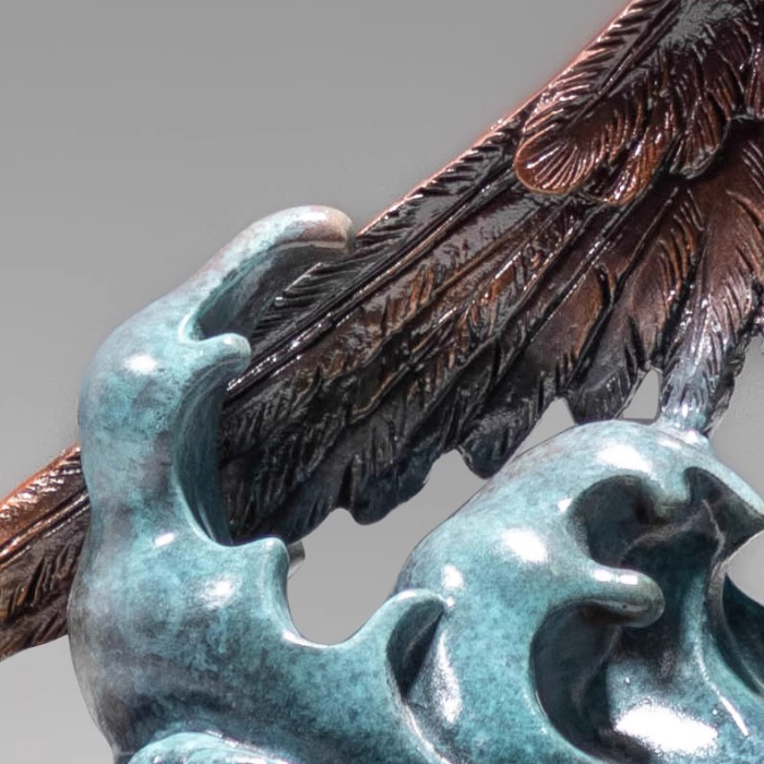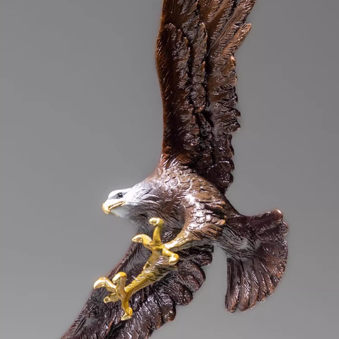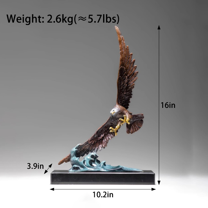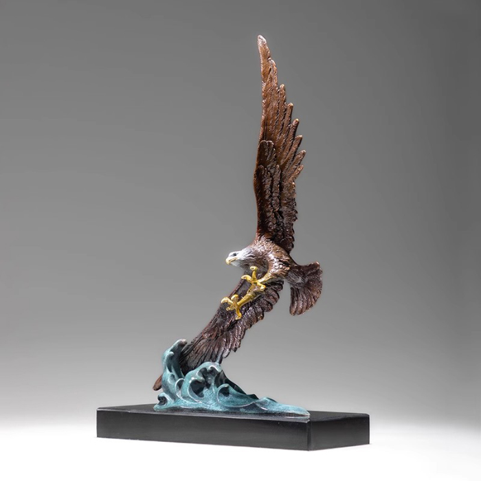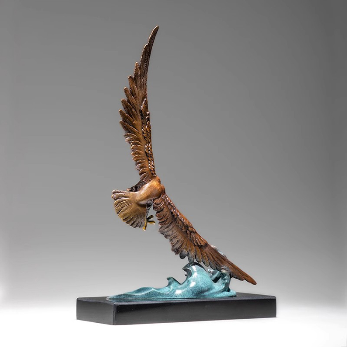 The entire work conveys power, freedom, and control through the depiction of an eagle soaring over the sea. The scale of the outstretched wings and the body proportions have been meticulously considered, ensuring that the kinetic eagle sculpture is visually appealing from all angles. This type of artwork is not merely decorative but also a spiritual symbol. A frequently cited comment among collectors is that it possesses both artistic and symbolic value, embodying the resilience and dignity represented by the Bald Eagle Figurine. Whether for private collection or public display, it enhances the ambiance of the environment.