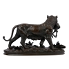 The small lion statue shows the bronze model of "LIONNE TENANT UNE ANTELOPE", modeled after CHRISTOPHE FRATIN (France, 1801-1864).