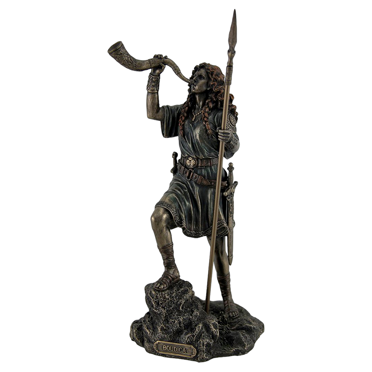 The Buddica sculpture symbolizes courage, resilience, and freedom. As the brave queen of Iseni, Budika represents a spirit of bravery and determination. She holds a spear and horn, symbolizing her bravery and leadership in battle. She wore a sword on her waist, symbolizing her status as a warrior and her desire for freedom. This sculpture encourages people to bravely face challenges, pursue justice and freedom, and also showcases the power and influence of women in combat and leadership by presenting the image of Budika.