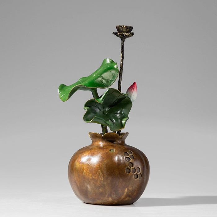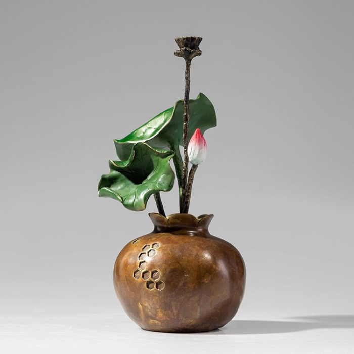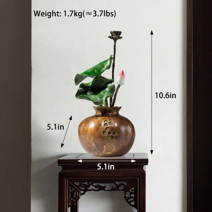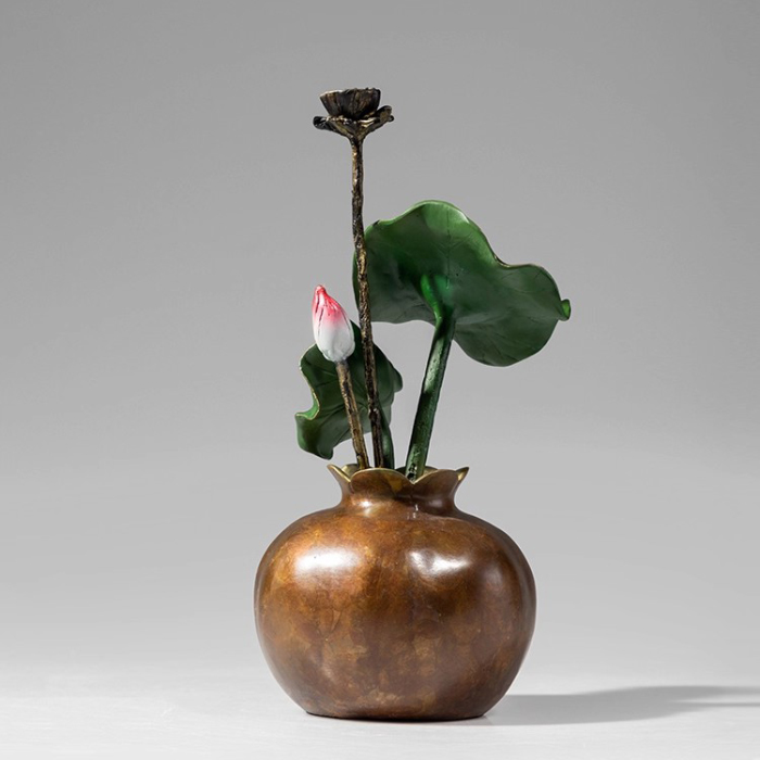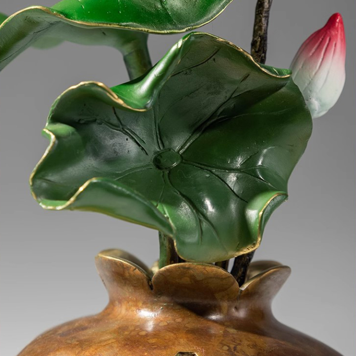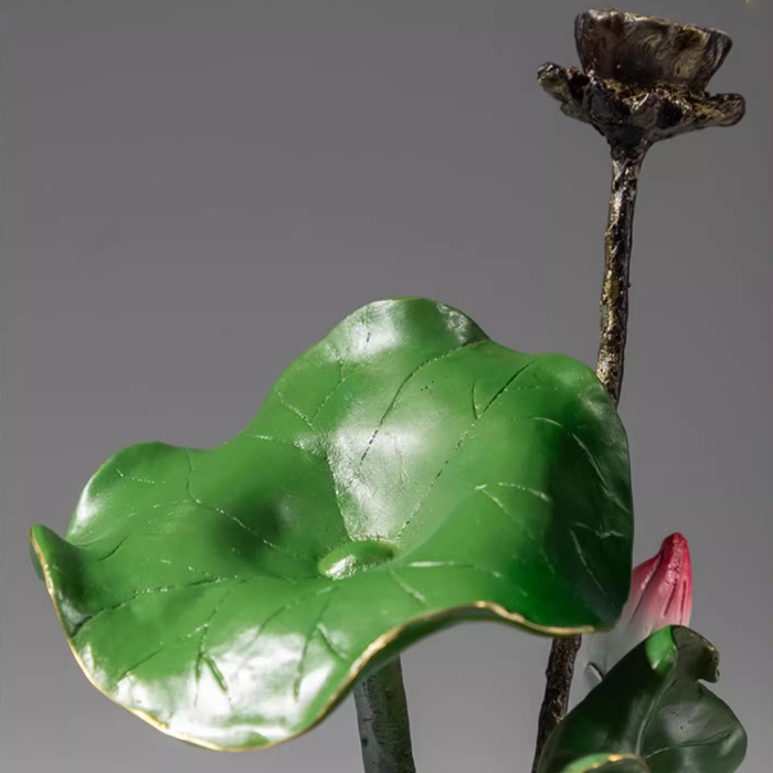 The sculpture captures the purity, tranquility, and essence of the lotus in brass. From the curved leaves and budding blossoms to the delicate textures of the lotus seedpod, it showcases a fusion of natural vitality and sculptural artistry. The brass lotus sculpture is not merely a decorative item, but a reflection of a lifestyle. Placed in the home or tea room, it brings a sense of peace and spatial balance. Like many lotus garden statues, this brass lotus sculpture plays a vital role in creating elegance, beauty, and tranquility in the home, adding a touch of ritual and sophistication to daily life.